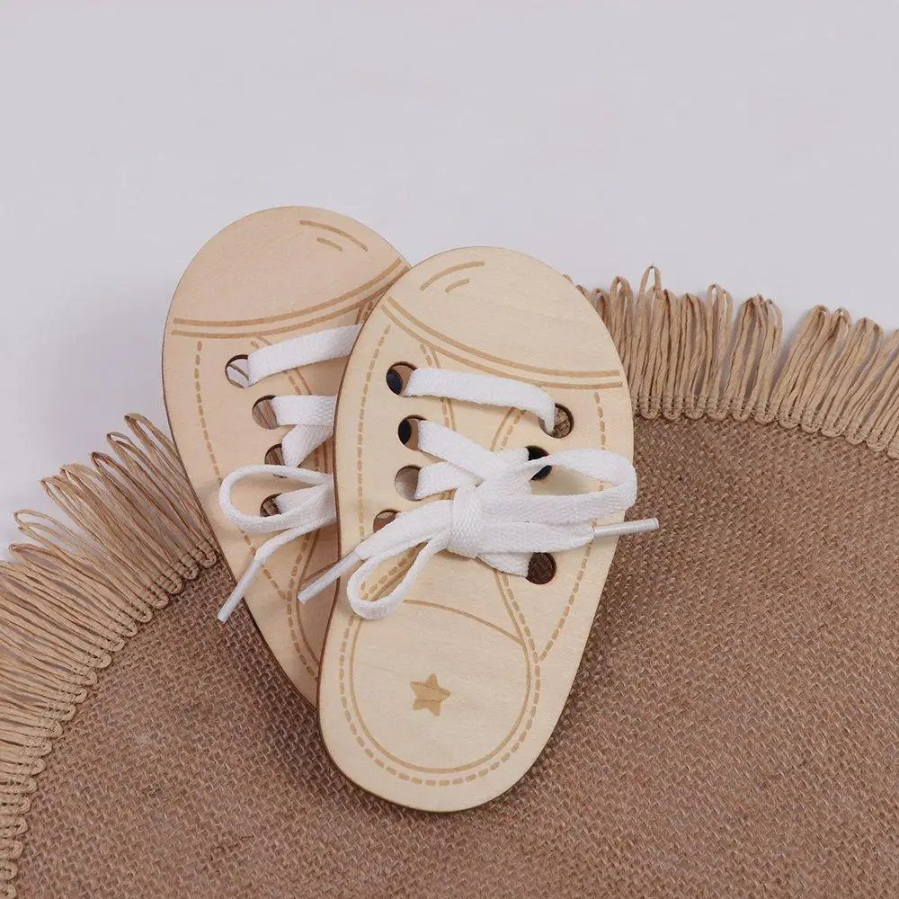 Montessori Teaching Aids Wooden Lacing Shoe Toy Learn to Tie Laces Toy Montessori Educational Toy Tying Shoelaces Boards